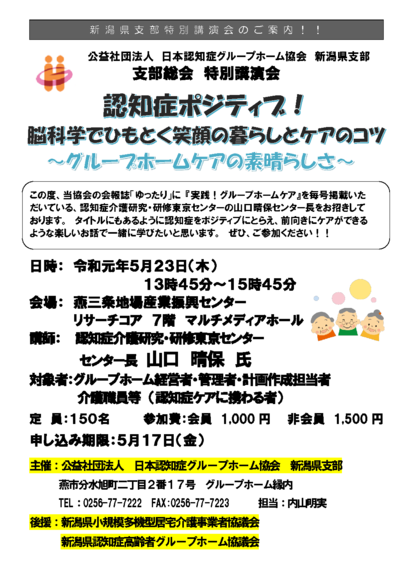 主催:公益社団法人 日本認知症グループホーム協会 新潟県支部