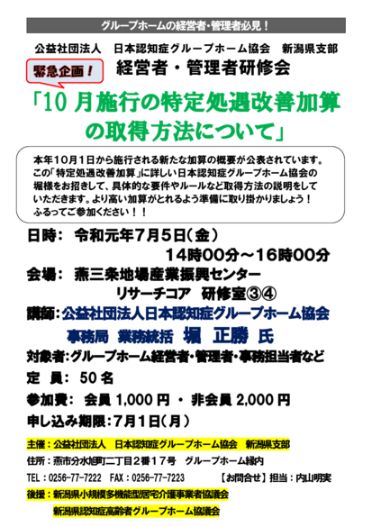 公益社団法人日本認知症グループホーム協会 新潟県支部