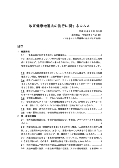・健康増進法の一部を改正する法律の施行に関するQ&Aの改正について
