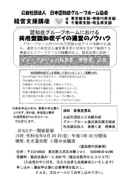 ・認知症グループホームにおける共用型認知症デイの運営のノウハウ(開催案内・参加申込書)
