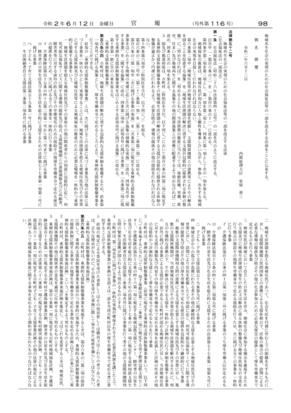 ・【令和2年6月12日付け】官報(地域共生社会の実現のための社会福祉法等の一部を改正する法律)