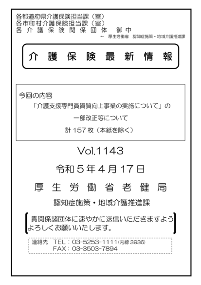 【厚生労働省】「介護支援専門員資質向上事業の実施について」の一部改正等について(介護保険最新情報Vol.1143)