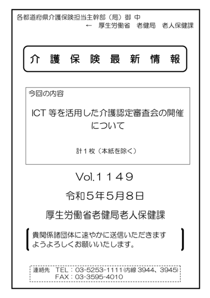 ・ICT等を活用した介護認定審査会の開催について(介護保険最新情報Vol.1149)