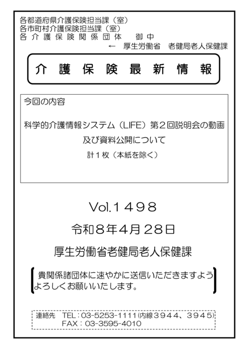 ・科学的介護情報システム(LIFE)第2回説明会の動画 及び資料公開について(介護保険最新情報Vol.1498)